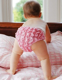 Scrunchy gingham knickers in four different colours for babies.
