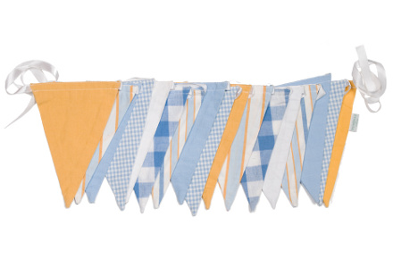 5 metres of blue and gold bunting in stripes, checks and plains - perfect for boys.